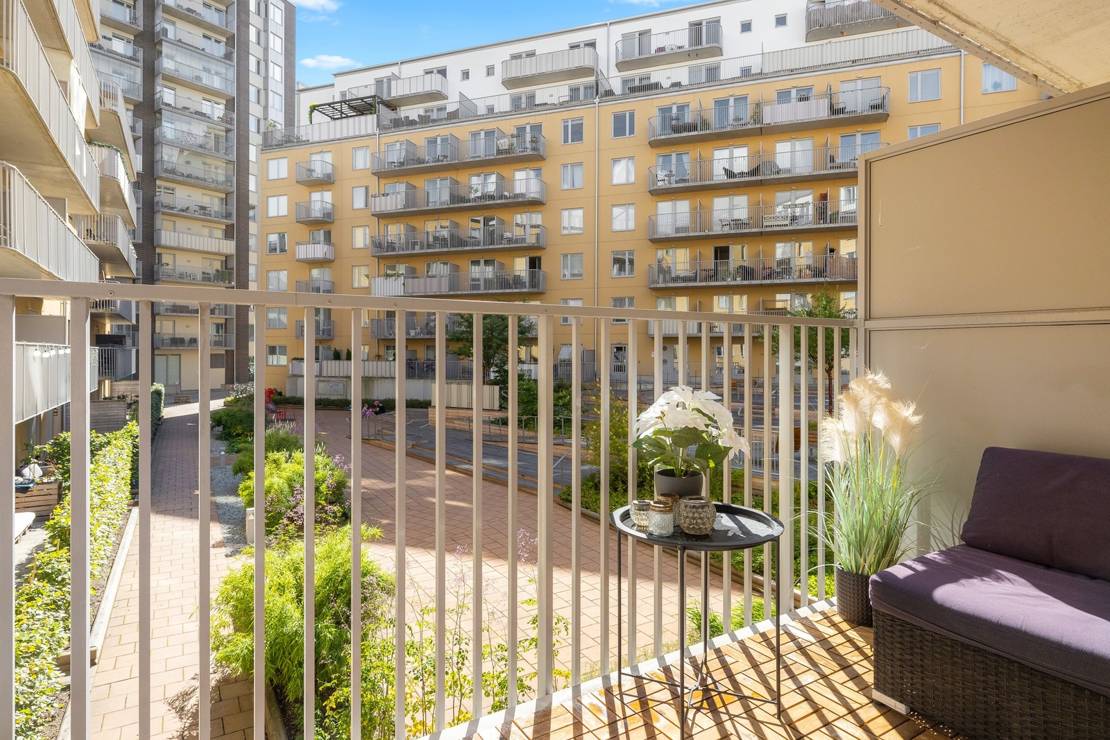 Här möts du av en välplanerad lägenhet med en stor balkong och ett genomgående ljusinsläpp tack vare stora fönster i två väderstreck. Det luftiga vardagsrummet erbjuder gott om plats för både soffgrupp och tv-möbel, medan den öppna planlösningen mot köket skapar en naturlig samvaro. Köket är fullt utrustat med moderna vitvaror och rymmer en stor matplats för 6–8 personer – perfekt för middagar och umgänge.