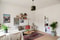 Luftigt och inbjudande vardagsrum med ljusa väggar och ett vackert ljust ekparkettgolv. De stora fönsterpartierna skänker ett generöst ljusinsläpp och skapar en härlig rymd. Här finns gott om plats för soffa, soffbord, stort matbord och annat önskat möblemang. Från rummet nås dessutom en rymlig klädkammare med utmärkta förvaringsmöjligheter.