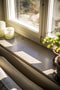 Genomgående ny fiskbensmönstrad ekparkett i hela bostaden, med undantag för master bedroom där en påkostad heltäckningsmatta bidrar till en varm och ombonad känsla. Fönsterbänkar i kalksten förstärker det exklusiva helhetsintrycket.