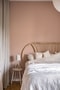 Det större sovrummet är lugnt placerat i anslutning till vardagsrummet och har fönster mot en stillsam gata. Här finns plats för dubbelsäng och övrig möblering. Även detta rum har det charmiga parkettgolvet. Intill finns en rymlig klädkammare med utmärkta förvaringsmöjligheter.
