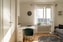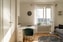 VARDAGSRUM/SOVRUM: Ljust och luftigt allrum med stora fönster och stilfullt parkettgolv. Från fönstret kan ni blicka ut över vacker grönska och glimtar av Mälaren. Här finns plats för både säng, soffa och matbord i en harmonisk miljö.