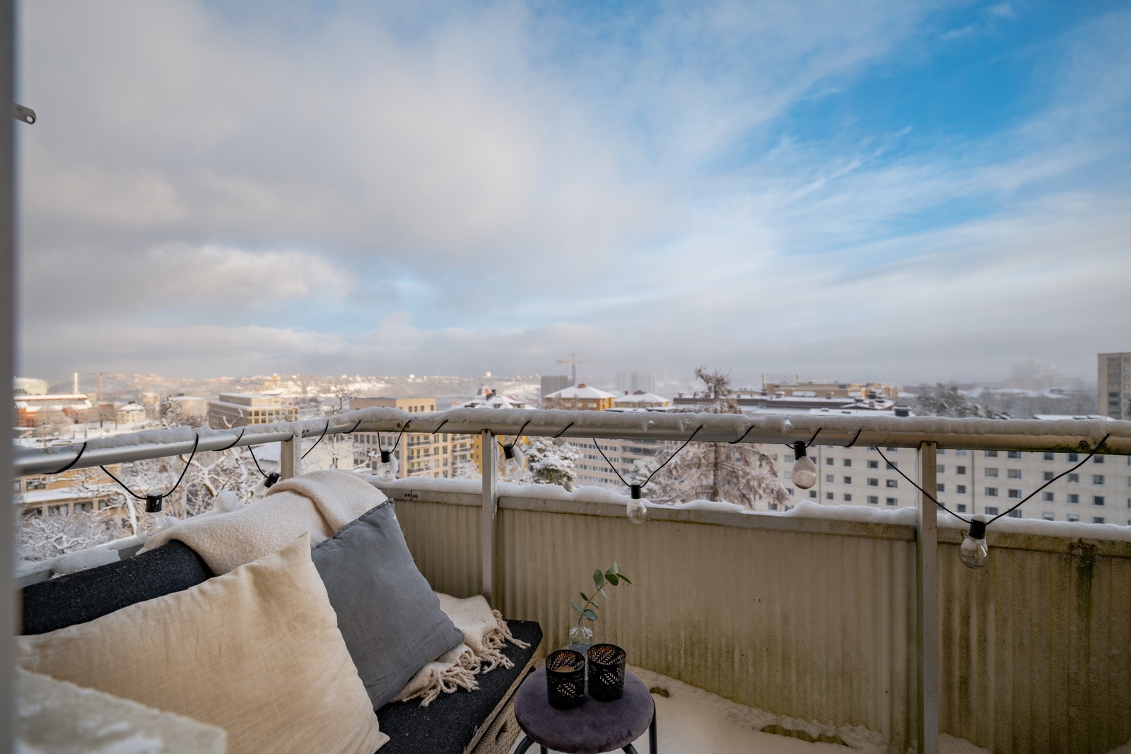 Underbar mini-2:a med balkong och milsvid utsikt i skuldfri förening!