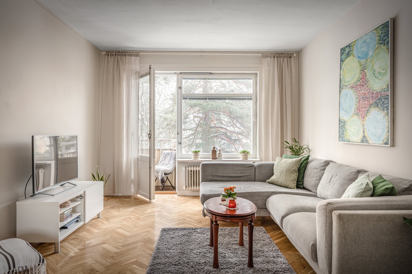 Bostaden ligger i ett lugnt läge med härlig utsikt över föreningens grönskande innergård och har generöst ljusinsläpp. Bostaden har omsorgsfullt renoverats med smakfulla materialval. Bostaden har en optimal planlösning med ett ljust vardagsrum med utgång till balkong, rymligt kök med gott om plats för ett större matbord, tre bra sovrum samt ett badrum och en gäst wc. Vad mer kan man begära?