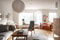Ljust och luftigt vardagsrum med stort fönsterparti och delvis öppet mot köket. Rummet kan inredas med soffa, soffbord, TV-bänk, bokhylla och matsalsmöbel. Här erbjuds flertalet möbleringsmöjligheter.