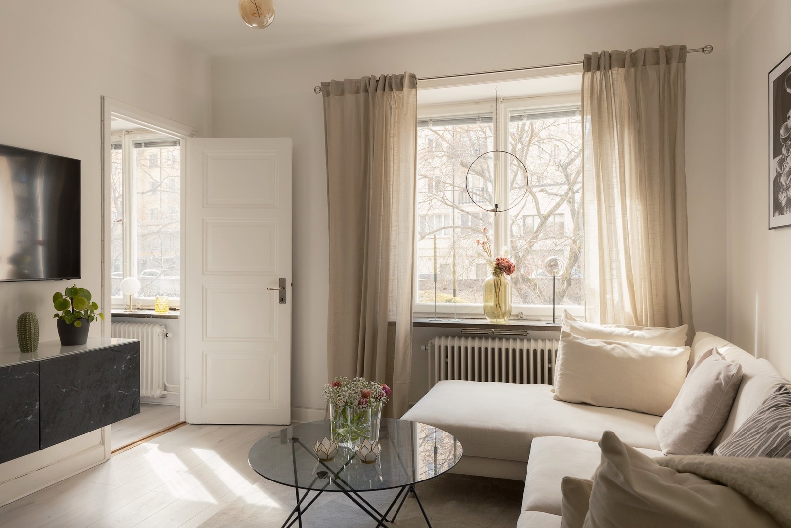 Välkommen till denna välplanerade minitvåa på attraktiva Industrigatan, lägenheten ligger i suterräng så man kommer högre upp från gatan. I hallen finns goda avhängningsmöjligheter samt en djup och rymlig klädkammare. Väl inne i lägenheten så är det en öppen planlösning mellan kök och vardagsrum, fint ljusinsläpp, plats för matgrupp och tv-möblemang. Köket är fräscht och utrustat med ugn, induktionshäll, kyl/frys, diskmaskin, diskhon samt gott om förvaring. I anslutning till vardagsrummet finns sovrummet med garderob och plats för 160säng. Helkaklat och rymligt badrum med tvättmaskin, kommod, dusch med glasdörrar, WC och handdukstork.