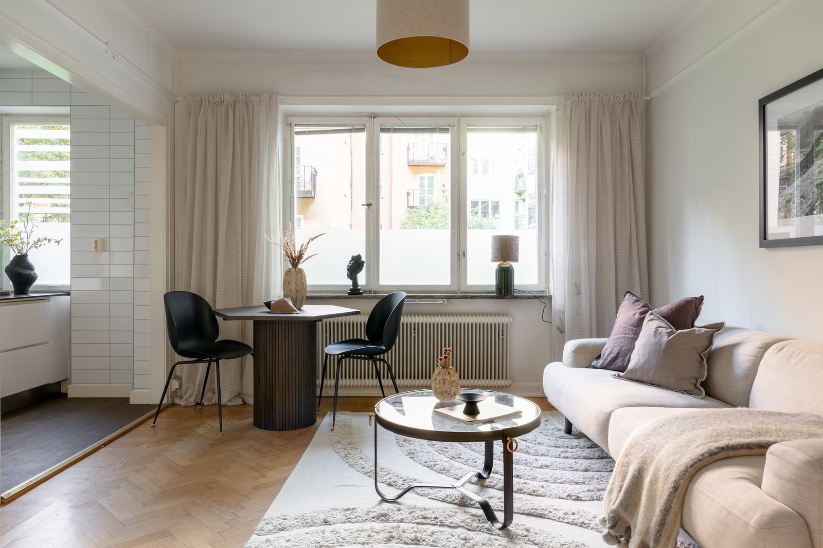 Välplanerad funkisetta med sovalkov och stora fönster – Nedre Kungsholmen