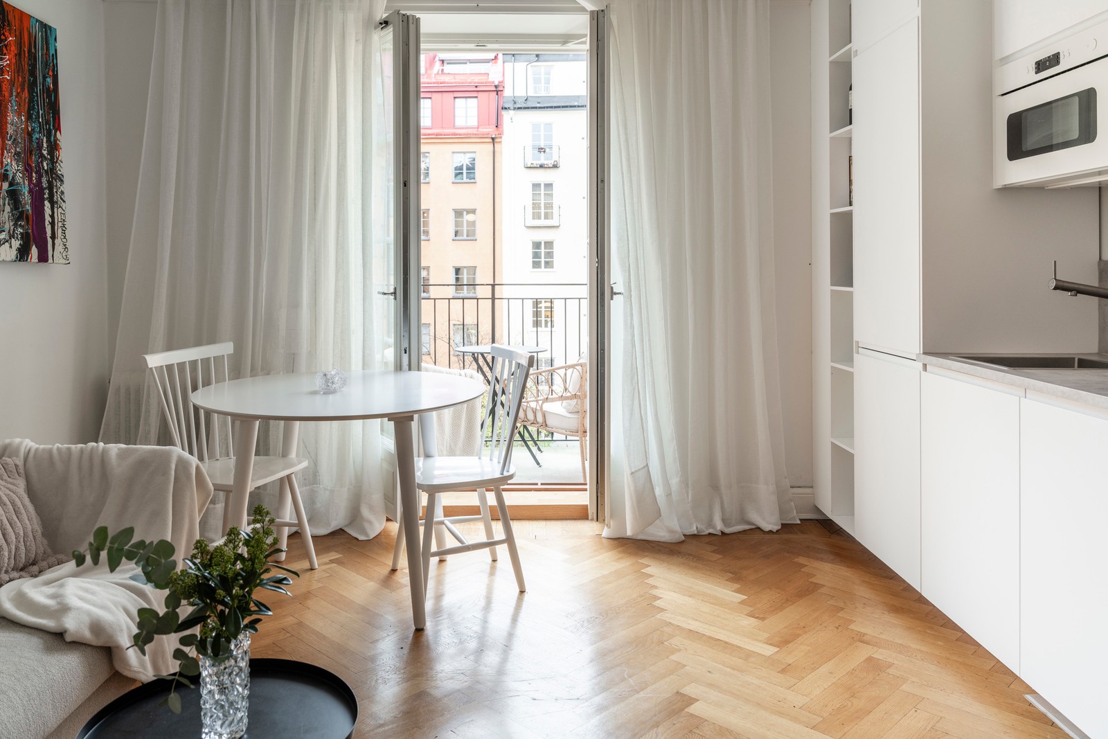 Snart saluförs denna välplanerade 2:a med absolut toppläge på nedre Kungsholmen. Lägenheten är otroligt bra planerad med kvadratmetrarna på rätt ställe. Fullt utrustat kök med smakfulla materialval och gott om arbetsytor i öppen planlösning mot det ljusa och sociala vardagsrummet. Här erbjuds gott med plats för generös sällskapsdel samt matbord och annan önskvärd inredning. Stort och härligt fönsterparti med utgång till balkong mot innergård i soligt västläge. Sovrummet är av generös storlek och rymmer säng samt goda förvaringsmöjligheter. Fräscht nyrenoverat badrum med dusch, kommod samt wc.