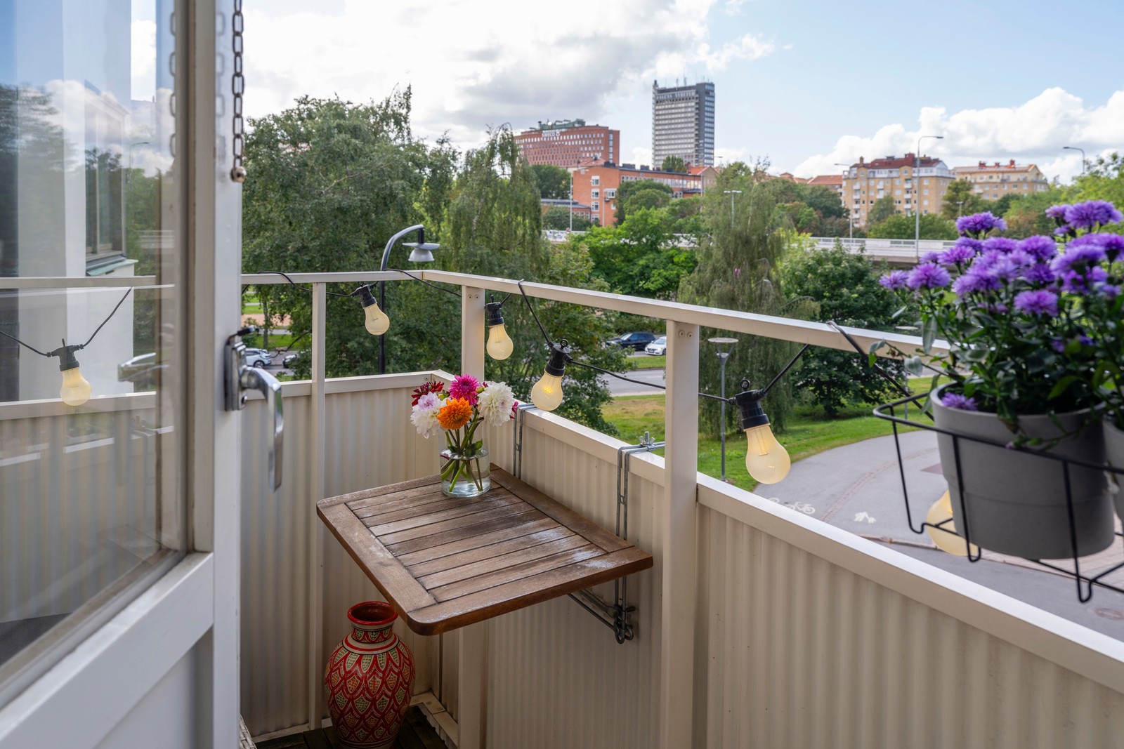 Charmig etta på attraktiv adress med balkong mot grönska!
