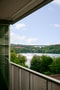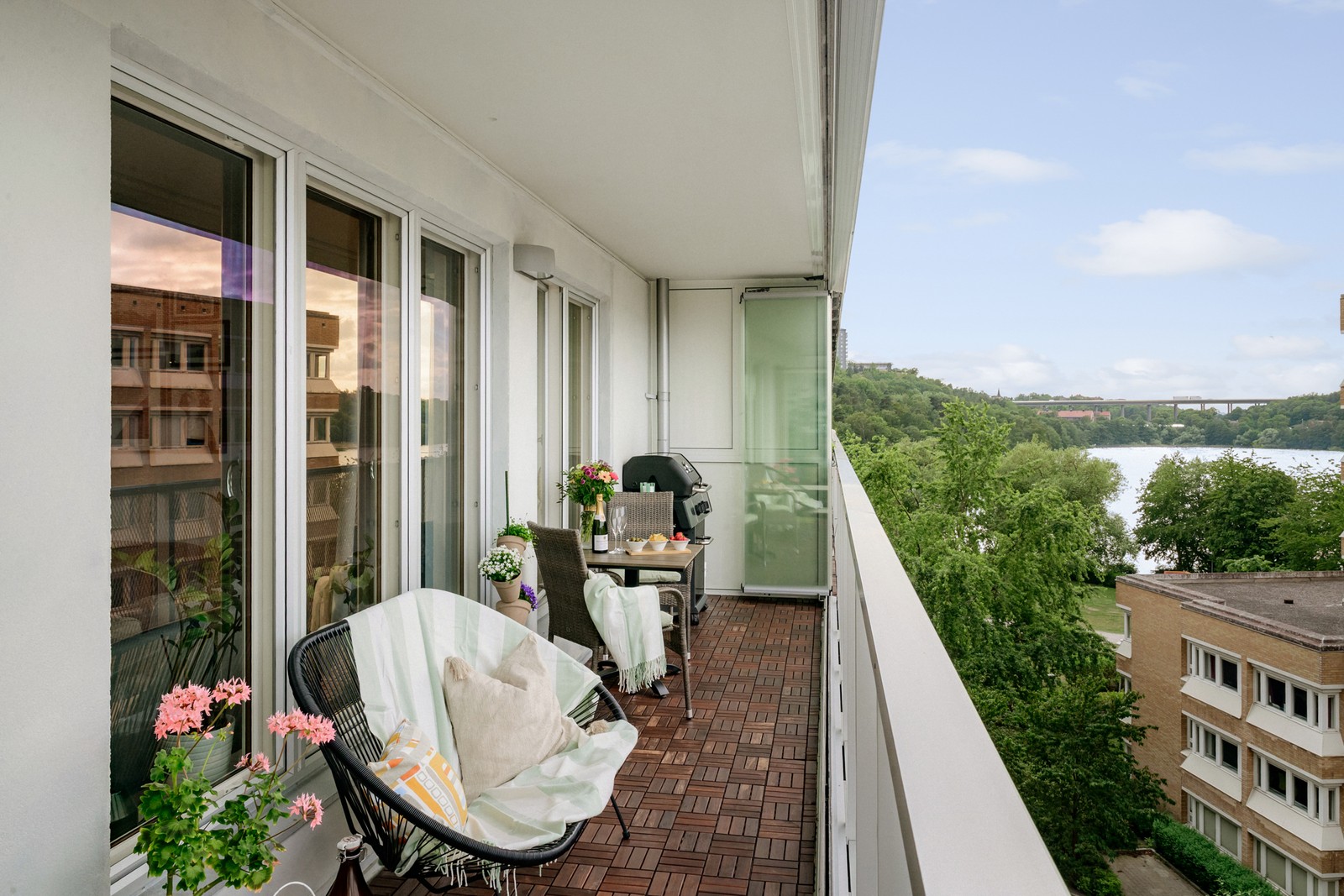Magisk utsikt mot Trekantssjön från balkong i västerläge.