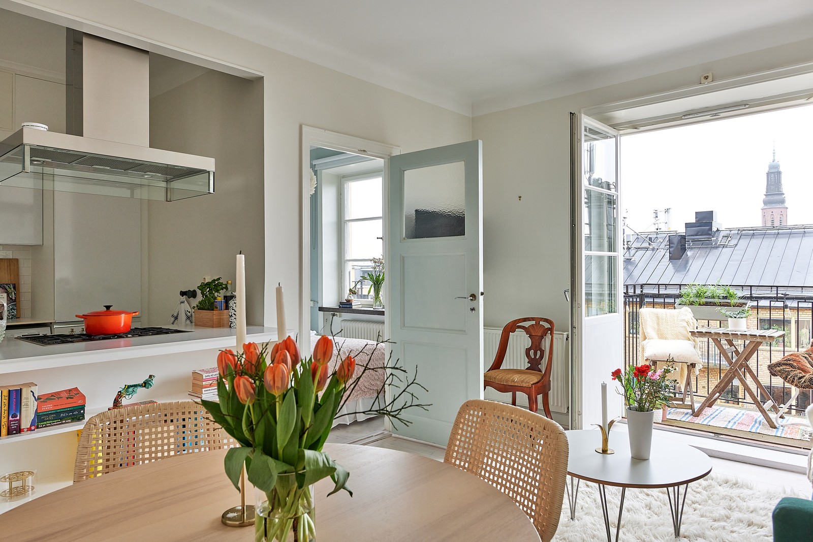 Högst upp i huset med sydvästvänd balkong, öppen planlösning och fina originaldetaljer bevarade!