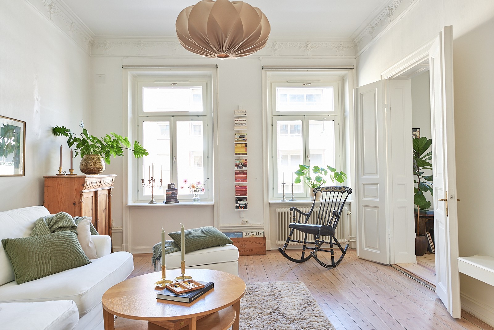 Ljust boende högt upp med solig balkong, charmiga kakelugnar och exklusiva sekelskiftesdetaljer!