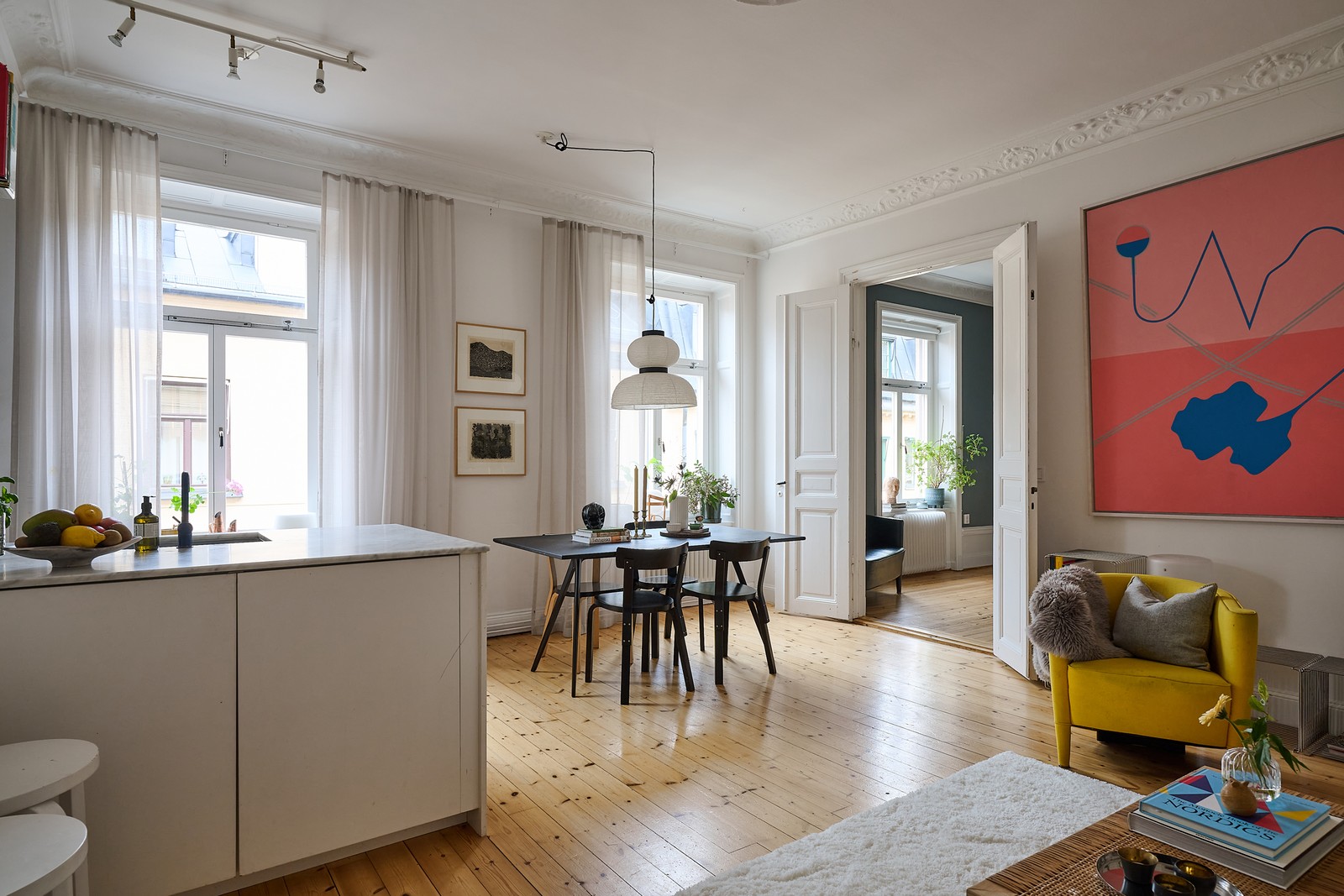 Vacker sekelskifteslägenhet anno 1904 med två kakelugnar och välbevarade detaljer