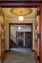 Välkomnande och stilren hall med vackert trägolv och målade väggar. Här finns gott om förvaring i form av platsbyggda skåp samt praktiska avhängningsmöjligheter. Bevarad spegeldörr bidrar med charm och karaktär.