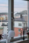 Balkong i högt läge mot innergård. Österläge med morgonsol.