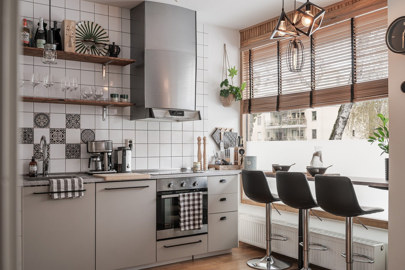 Den öppna planlösningen mellan kök och vardagsrum ger hemmet en generös social yta. Här strömmar ljuset in från stora fönster som ramar in rummet och skapar en behaglig atmosfär under dygnets alla timmar. Det moderna köket är smakfullt renoverat och erbjudet gott om arbetsyta, smart förvaring och en tidlös färgsättning. Här är det enkelt att umgås - en idealisk plats för middagar, vardagsliv och spontana sammankomster.