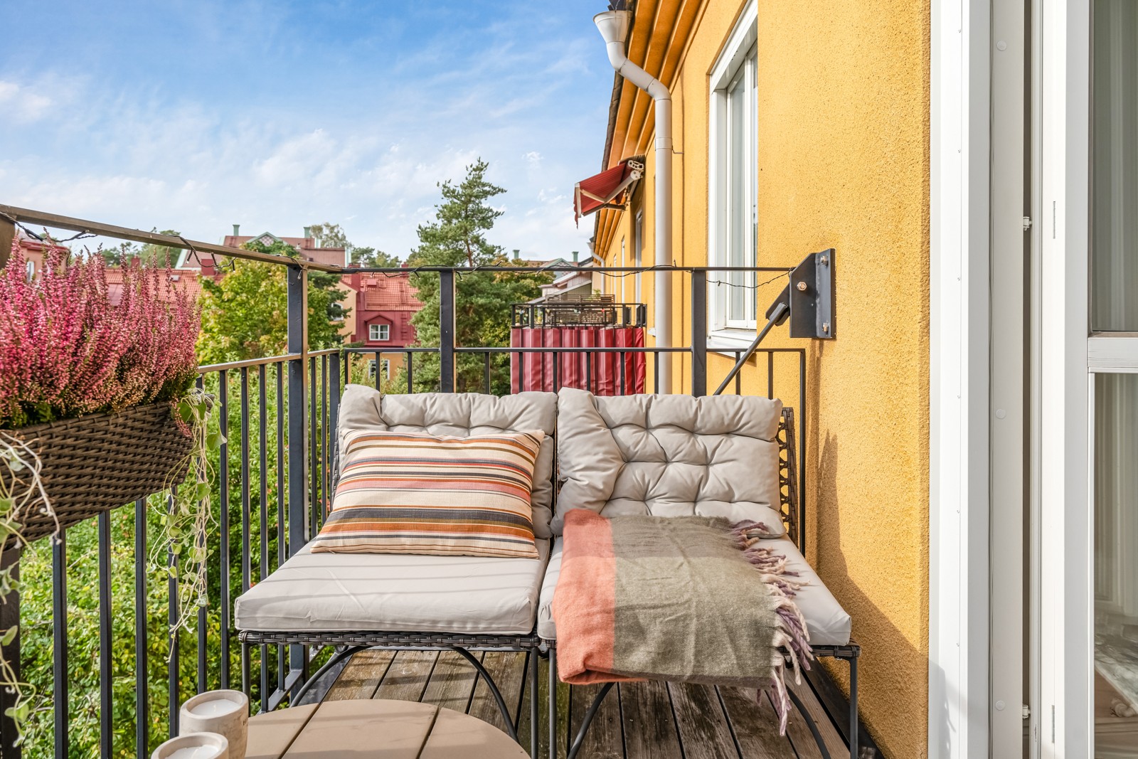 Underbar hörnlägenhet med svårslagen balkong som har sol under hela dagen!