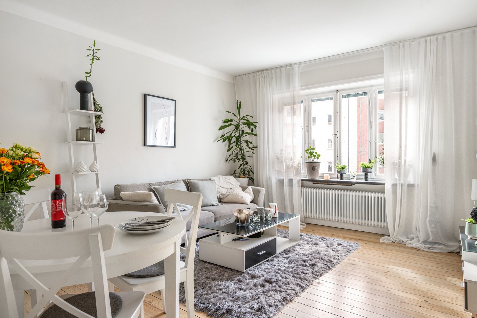 Till höger om hallen ligger ett välplanerat kök med goda arbetsytor, bra förvaring och all utrustning som behövs för ett smidigt vardagsliv. Det ljusa och rymliga vardagsrummet har gott om plats för både soffgrupp och matplats. Från hallen når du även det helkaklade badrummet som renoverats i samband med stambyte och utrustats med flera tillval som höjer komforten, bland annat golvvärme. Sovrummet är generöst tilltaget, lätt att möblera och rymmer flera garderober.
