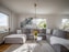 Bostaden präglas av stora fönsterpartier i flera väderstreck som låter ljuset flöda in och förstärker den luftiga atmosfären. Vardagsrummet är generöst och inbjudande med gott om plats för både sociala tillställningar och avkoppling, där utsikten blir en naturlig del av inredningen. Den öppna planlösningen mot köket skapar ett modernt och socialt flöde.