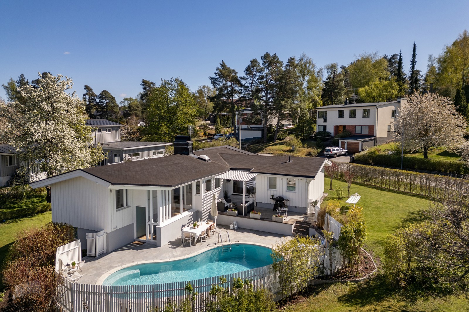 Dansk arkitektdröm med soldränkt poolområde