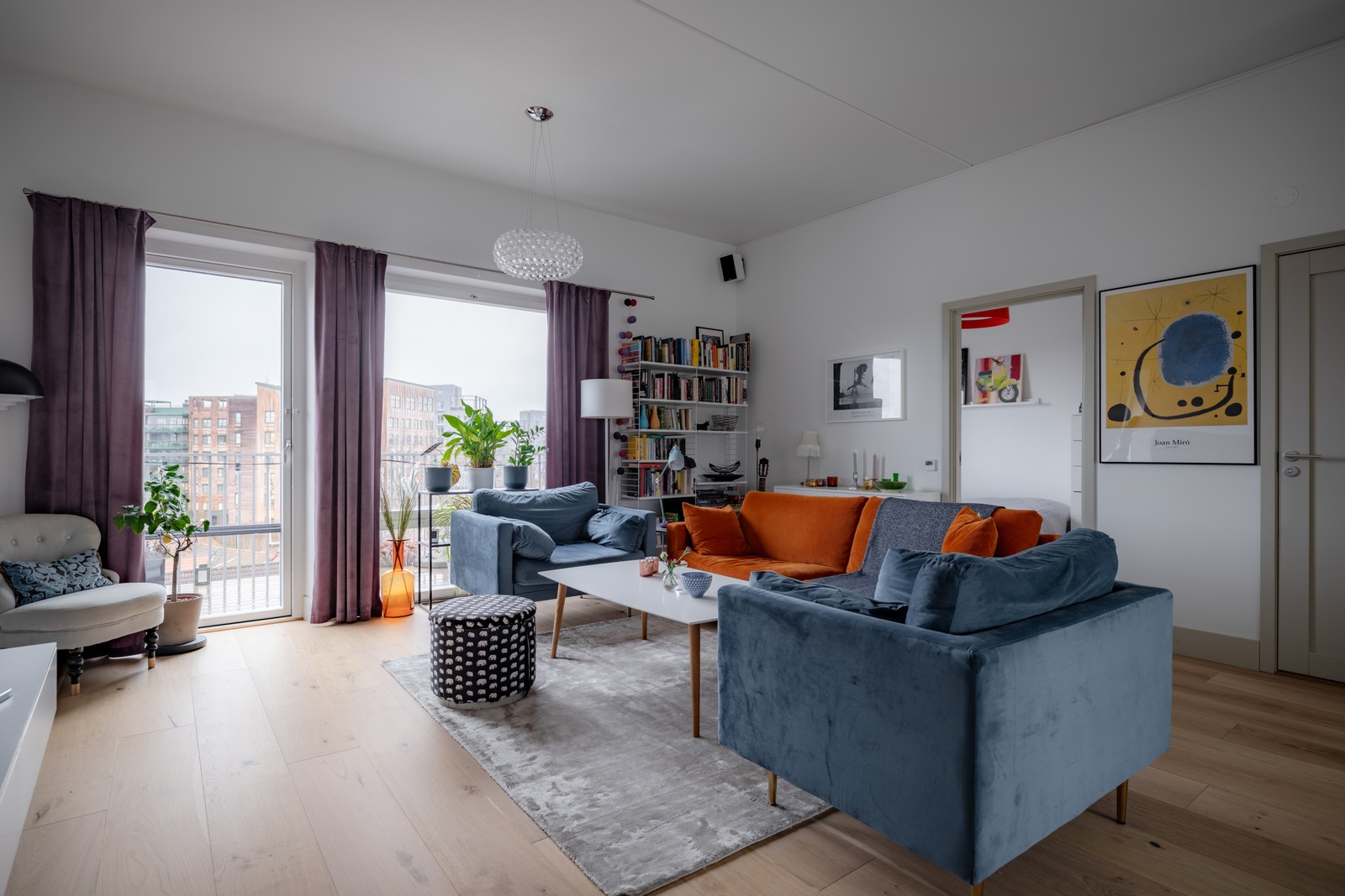 Lägenheten är utrustad med två ytterdörrar sida vid sida som ger både stil och funktion, 3-glasfönster med utmärkt ljudisolering och hög energieffektivitet samt vattenburen golvvärme som höjer komforten. Genomgående hög standard med eleganta, extra breda plankgolv i sandborstad ek. Stora fönster med stilrena fönsterbänkar i carraramarmor samt socklar och foder i elegant ljusgrå ton. Generöst med förvaringsutrymmen, inklusive ett tillhörande källarförråd.
