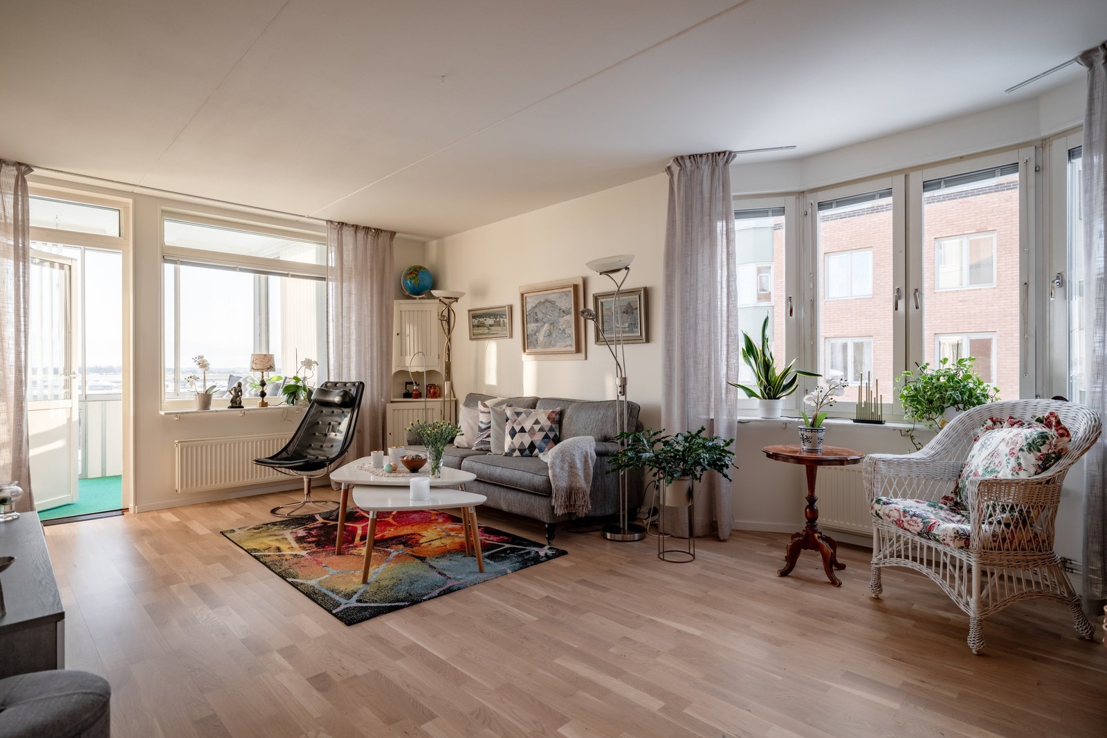 Ljust och rymligt vardagsrum med plats för både soffgrupp och övrigt möblemang. Rofyllt sovrum med anslutande klädkammare som erbjuder god förvaring. Helkaklat duschrum utrustat med handfat, wc och dusch samt tvättmaskin och torktumlare. Till lägenheten hör ett stort källarförråd med bekvämt avstånd från hissen.