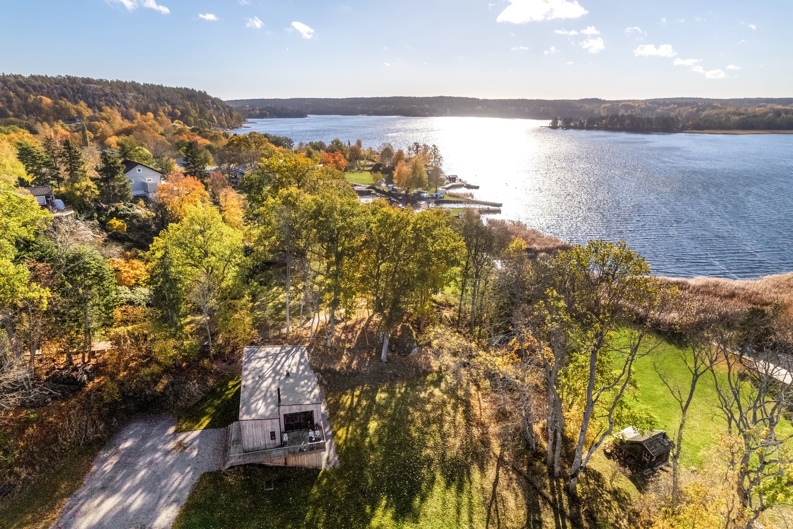 Vid vattnet möts du av en imponerande strandlinje med fantastisk havsutsikt. Här skapar de vajande vassruggarna en naturlig inramning till den avskilda tomten, där sommarkvällar kan avslutas med middagar i kvällssolens sken medan horisonten badar i färger. På vintern förvandlas sjölandskapet till ett lugnt vinterparadis, där is och snö täcker fjärden – perfekt för långfärdsskridskor, längdskidor eller rofyllda promenader längs Kalvfjärdens kust.