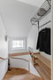 Lägenheten ligger alltså högst upp i huset och har en härlig känsla av att vara en vindsvåning med takbjälkar och en påtaglig karaktär samtidigt som det har en planlösning som skapar både funktionella lösningar med ljusa och rymliga rum och ytor.