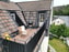 Stor takterrass med plats för solstolar och loungemöbler. Terrassen nås från såväl vardagsrummet som sovrummet. Det snygga trägolvet på terrassen är nyligen oljat.