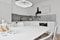 Ekparkett tillsammans med vita väggar ger bostaden en stilren och harmonisk grund. Det vita köket kompletteras av ett grått stänkskydd ovanför arbetsbänken som tillför en elegant detalj. Köket är fullt utrustat med spishäll, fläkt, ugn, mikro, diskmaskin samt kyl och frys. I anslutning till fönstret finns en trevlig matplats med generöst ljusinsläpp.