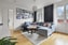 Ekparkett och ljusgrå väggar skapar en stilren och harmonisk känsla. Här finns plats för en soffgrupp, och rummet får fint ljusinsläpp från fönstret samt den glasade dörren som leder ut till balkongen i perfekt västerläge. Den öppna planlösningen mot köket bidrar till en luftig och social atmosfär.
