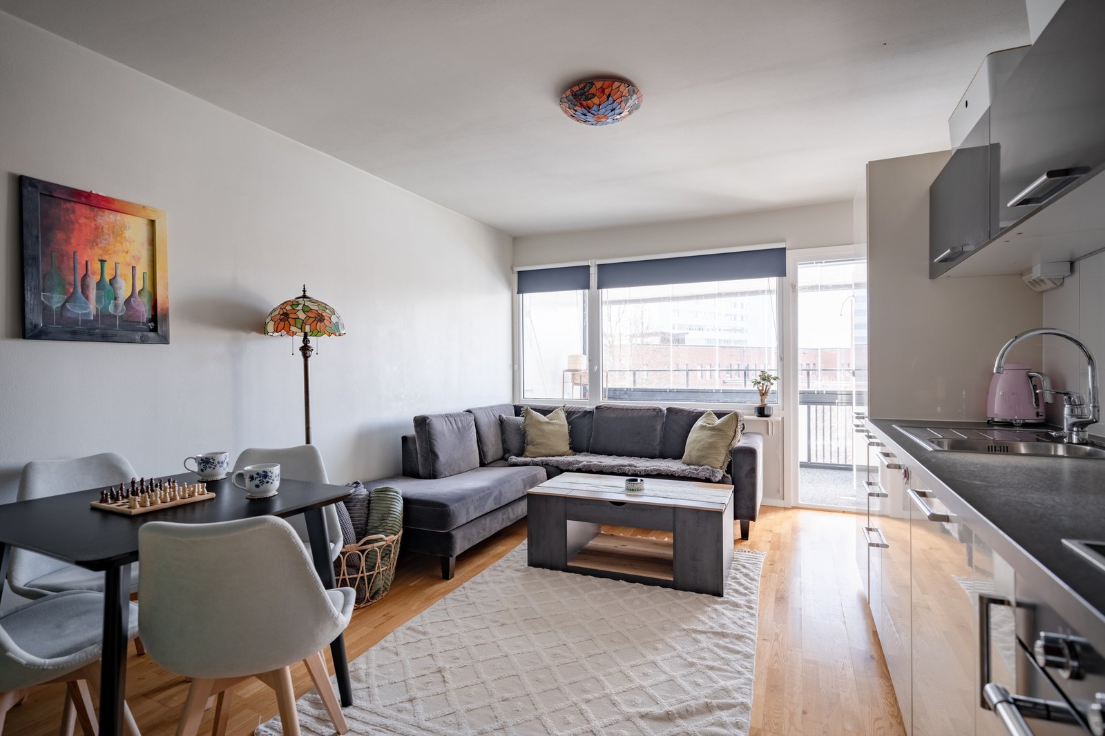 Välkommen till en ljus och välplanerad 3:a med öppen planlösning, genomgående parkettgolv och moderna ytskikt.
