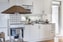 Kök inrett med vita skåp och bänkskiva i laminat med träutseende samt nedsänkt diskho. Parkettgolv, vitmålade väggar samt kakel över diskbänken. Ovan diskbänken finns ett mindre fönster mot innergården, som ger ett skönt ljusinsläpp. Köket är utrustad med spis med ugn, spisfläkt, inbyggd mikro, diskmaskin och kyl/frys. Matplats mellan köket och rummet.