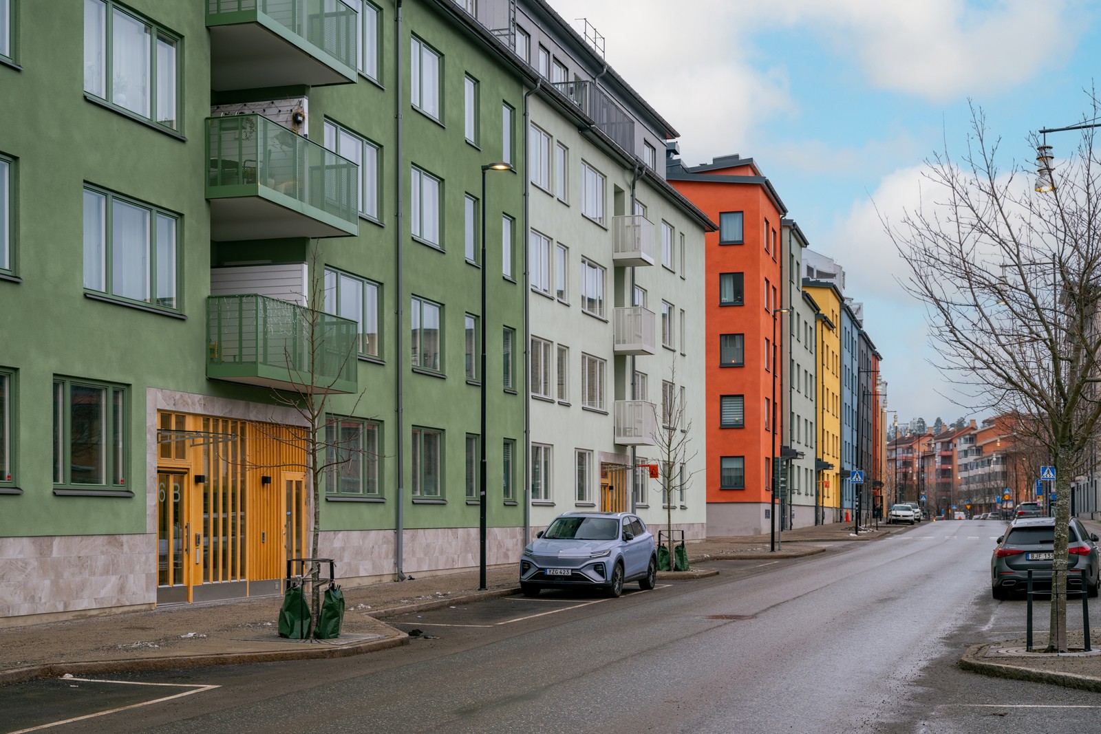 Genomgående fin lägenhet i nyskick i fastighet från 2023. Här får du ett välplanerat boende på rymliga 100 kvm fördelade över fem rum och kök. Öppen och social planlösning mellan kök och vardagsrum där det finns plats för både soffgrupp och matsalsbord. Från köket nås ett av de fyra sovrummen där de övriga tre sovrummen ligger mot baksidans innergård. I denna praktiskt planerade lägenhet får du dubbla badrum med dusch i båda och det större erbjuder även både tvättmaskin och torktumlare.