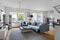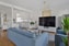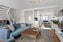 Stort och luftigt vardagsrum med generöst ljusinsläpp från de stora fönstren och altandörren som leder ut till bostadens uteplats. Rummet erbjuder gott om plats för både soffa och matsalsmöbel. Golvet är i ekparkett och väggarna är ljust målade.