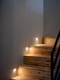Ljust klinkergolv och ljusgrå målade väggar och infällda spotlights i taket. Plats för avhängning.