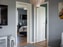 Laminatgolv och vita väggar. En garderob och ett fönster.
