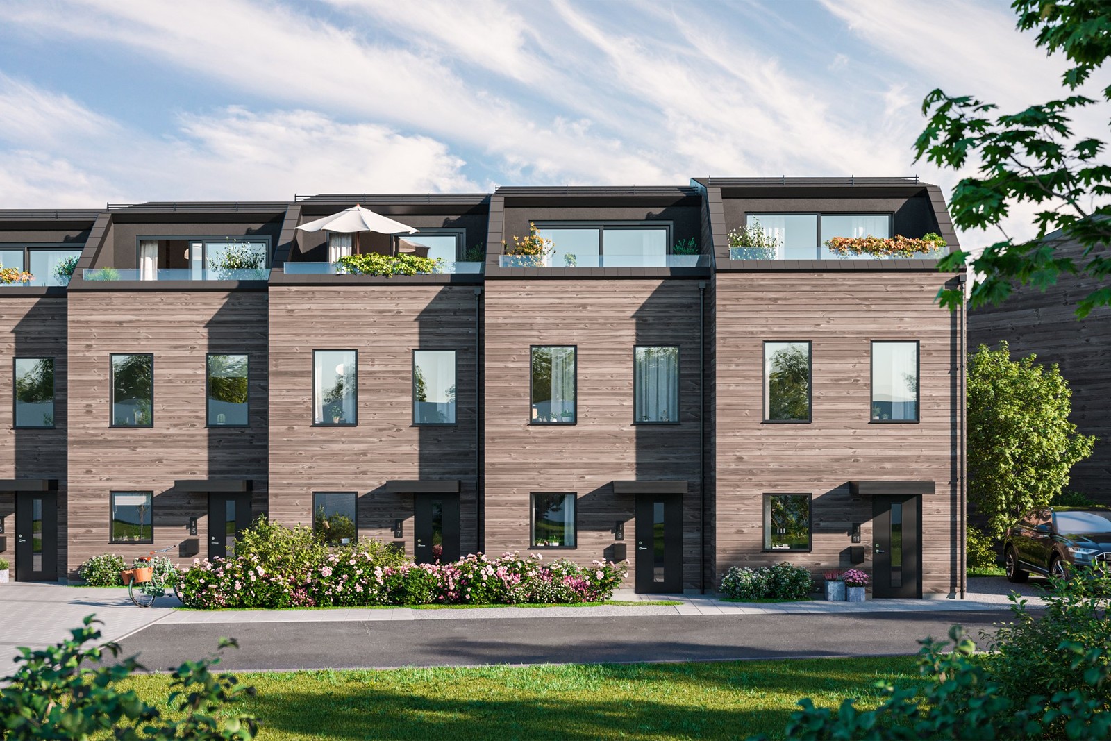 Radhus i barnvänligt kvarter med exklusiv takterrass och påkostade materialval.