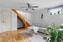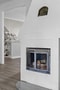 Vita väggar med parkettgolv. Plats för TV hörna, kamin.