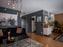 Parkettgolv och målade väggar i mörk petrolblå färg. Öppen planlösning mot matplats och arbetskök i vinkel. Stort skjutbart fönsterparti som öppnar upp till den härliga terrassen i perfekt västerläge.