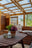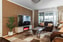 Ljust och trivsamt rum med parkettgolv och målade väggar. Generösa fönsterpartier och altandörr mot uteplatsen släpper in rikligt med ljus och skapar en luftig känsla.