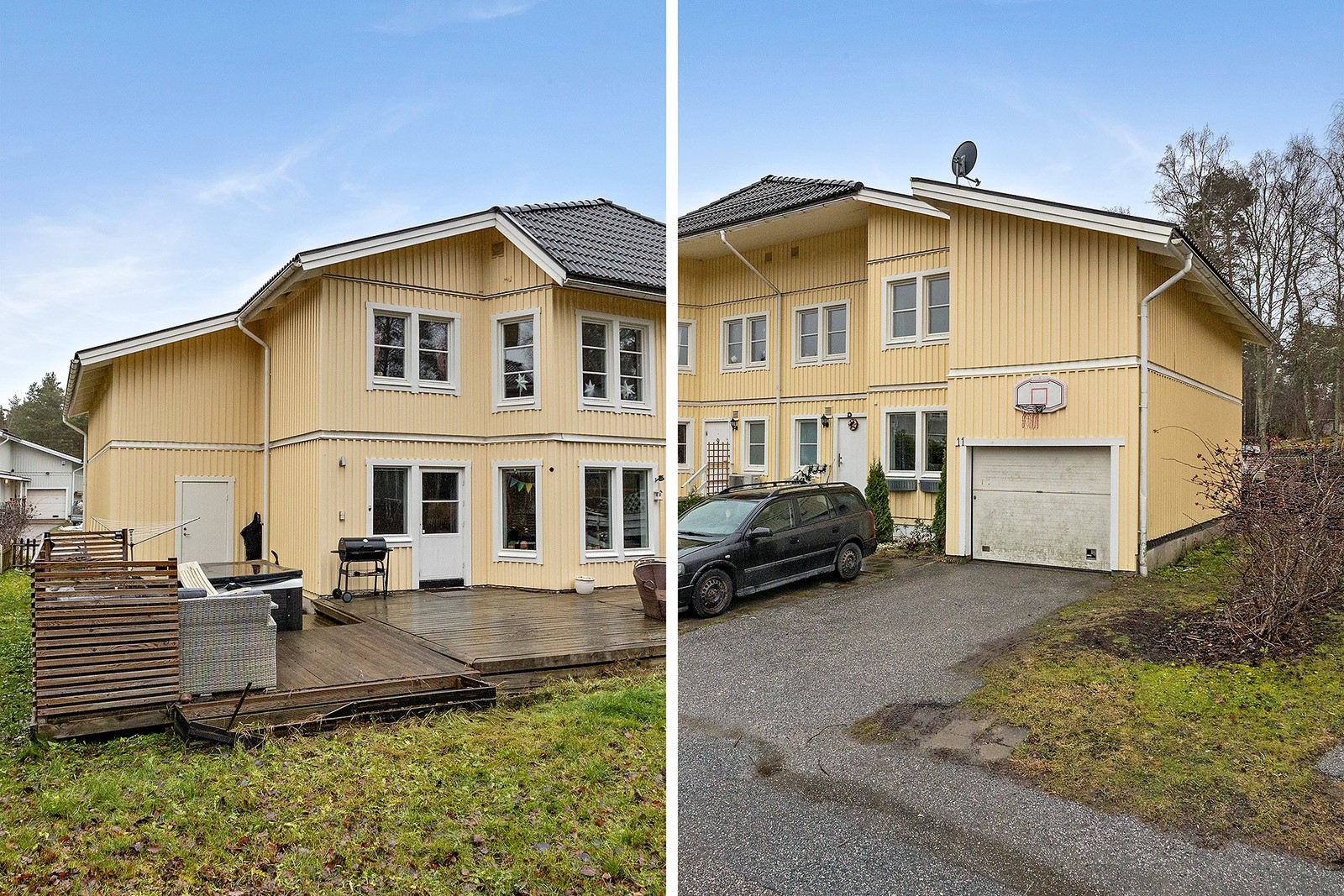 Söker du den där kombinationen av att vara naturnära i ett funktionellt och praktiskt boende rymligt nog för den större familjen? Då ska du definitivt läsa vidare om detta rymliga parhus i trygg bostadsrättsform på Grönlundsvägen 11 i Kårsta. Uppskattar du dessutom ett eget större garage med ett lika stort övre plan som idag är ett förråd men även kan göras om till ytterligare sovrum och ytor som ansluter till det över planet - ring mäklaren direkt!