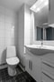 Innanför dörren möter den rymliga hallen med sobert grått klinkergolv. Lite längre in finns garderober delvis med skjutdörrar med tilltagna förvaringsmöjligheter. Från hallen nås det stora kombinerade badrummet och tvättstugan som uppdaterats med bl a en duschkabin och ny kommod. Här finns även bostadens värmekälla - elpannan (vattenburen värme) som tillsammans med luft-/luftvärmepumpen i hallen sörjer för bostadens uppvärmning.