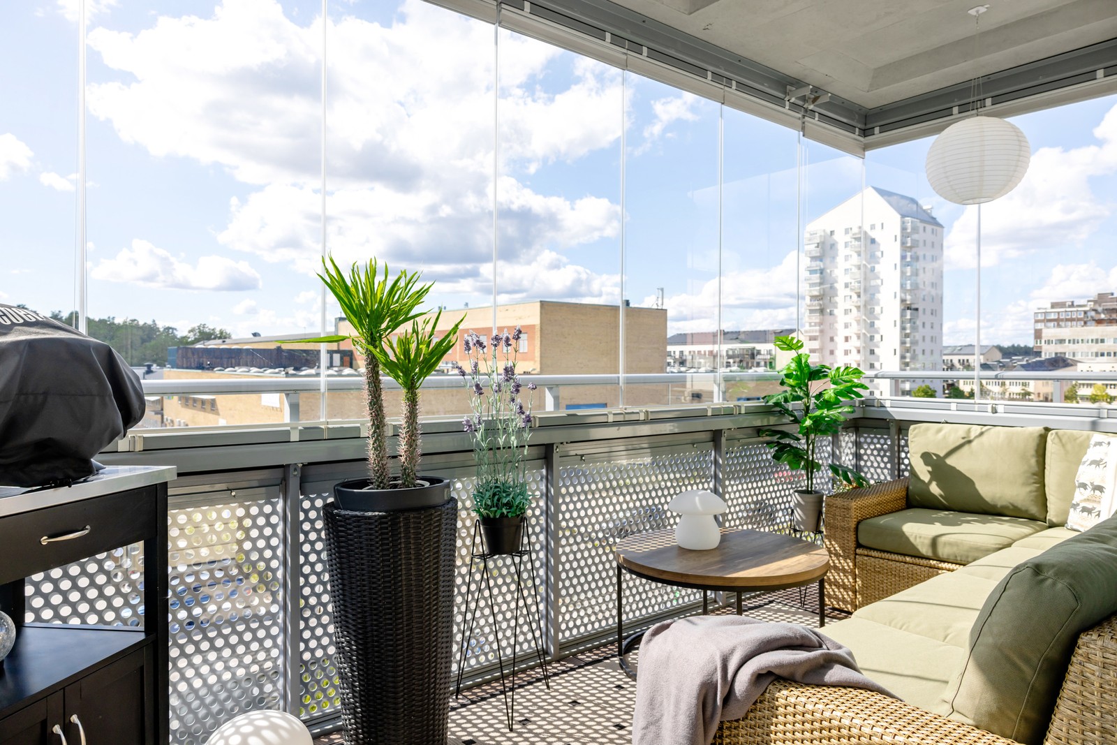 Stilfull 3:a med inglasad balkong och drömläge i sydväst utan insyn.