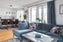 Det ljusa vardagsrummet ligger i direkt anslutning till det moderna köket, vilket skapar en inbjudande yta för både vardagsmys och middagar med vänner. De stora fönsterpartierna släpper in rikligt med dagsljus och förstärker känslan av rymd.