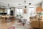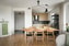 Öppen planlösning mellan kök, matplats och vardagsrum