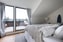 En trappa upp skiftar fokus till det privata livet. Genom att separera de sociala ytorna från sovrummen skapas ett hem där flera aktiviteter kan pågå parallellt; barnens lek i allrummet behöver inte störa lugnet i de två välplanerade sovrummen på samma våningsplan. Vidare upp nås sedan vindsplanet, som är bostadens verkliga pärla. Här finns ytterligare ett rofyllt sovrum med två klädkammare samt ett praktiskt mindre rum som i dagsläget disponeras som kontor. Det är dock den generösa takterrassen som stjäl showen, en privat oas med havsglimt där du kan blicka ut över skogens grönska och se vattnet skymta mellan trädkronorna i horisonten.