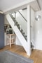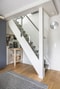 En trappa upp möts man av ett ljust och trevligt vardagsrum med stora fönsterpartier och utgång till den magiska altanen – ett extra rum att njuta av under sommarhalvåret. På övre plan finns även ett rofyllt sovrum med plats för dubbelsäng och förvaring i garderob bakom ett stilfullt draperi.
