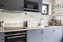 Det stilrena köket erbjuder generösa förvaringsmöjligheter i både skåp och lådor. Vid det vackra fönstret finns plats för matbord, där ljuset flödar in och skapar en trivsam atmosfär.
