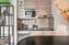 Lägenheten erbjuder ett fint pentry med stilfulla köksluckor. Här finns egen diskmaskin, micro, kyl/frys samt spishäll.