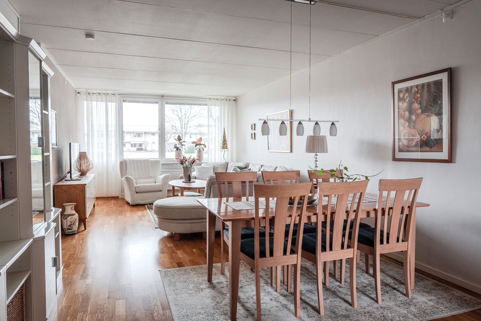 Nu finns chansen att förvärva en välplanerad 3:a i markplan med två uteplatser